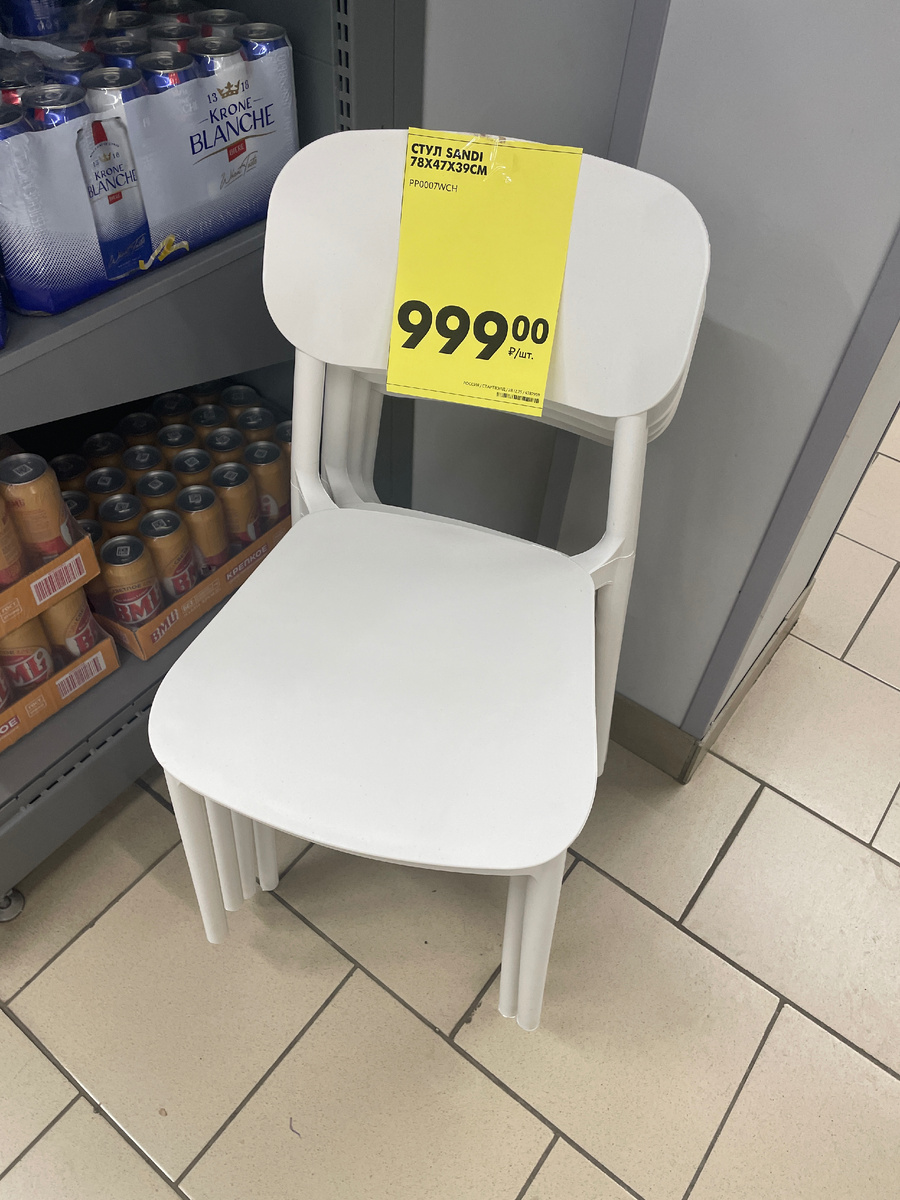 Пластиковые стулья без лишних деталей и на крепкие на первый взгляд.