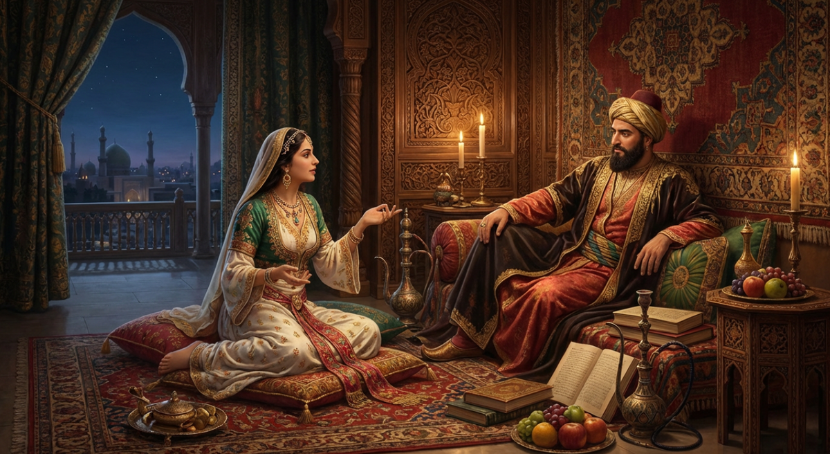 И вот тогда к отцу-визирю подошла дочь его, Шахерезада, обладавшая даром красивой речи и знанием множества удивительных историй и сказала она отцу: