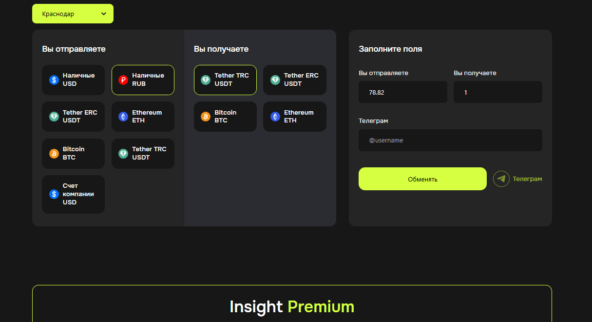 - Поддержка востребованных направлений, включая USDT в Краснодаре;