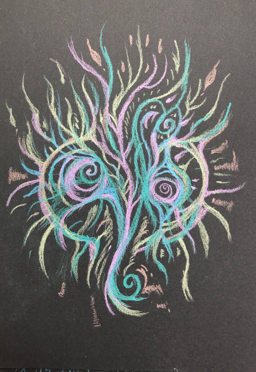 Я обещала рассказать, что я вижу в своих работах 🖼️. Выполняю. В первом рисунке я вижу: цветок 🌺, сову🦉, ракушки 🐚, яркую жизнь, желание жить, развиваться и расти 🌱 , огонь 🔥 Второй - о мире духов, связи миров 🌍, о том, что все взаимосвязано, необходимости находить баланс, гармонию с миром, с собой. Вот такой мой мир абстракций. Надеюсь 🤞 вам было интересно узнать о нём больше. Благодарю 🙏 что вам интересно, и вы оставляете комментарии, даете обратную связь, делились и делитесь своими ассоциациями. #ЗарисовкиНадеждыSN #абстракцииНадеждыSN #благодарность