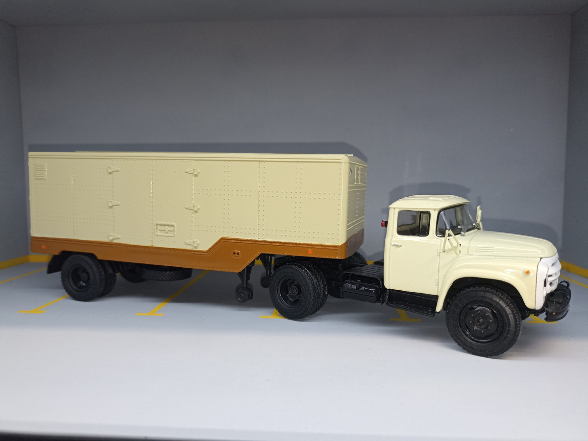 Изначально я хотел пустить под переделку журнальную сцепку, которая вышла в серии «Автолегенды СССР. Грузовики» в качестве спецвыпуска. Но в итоге взял от неё только полуприцеп, журнальный тягач, учитывая его упрощения и откровенный брак, был заменен на собрата от «Автоистории», а точнее, он был собран из аистовских запчастей, поэтому привожу только фото полуприцепа.