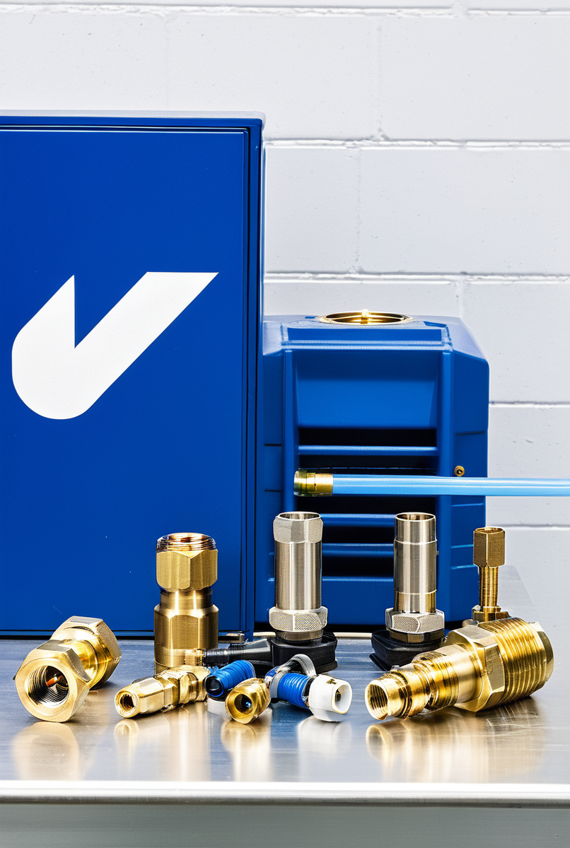 - Ключевые компоненты пневмосистемы: фитинг для пневматики, адаптер для компрессора и соединитель для сжатого воздуха