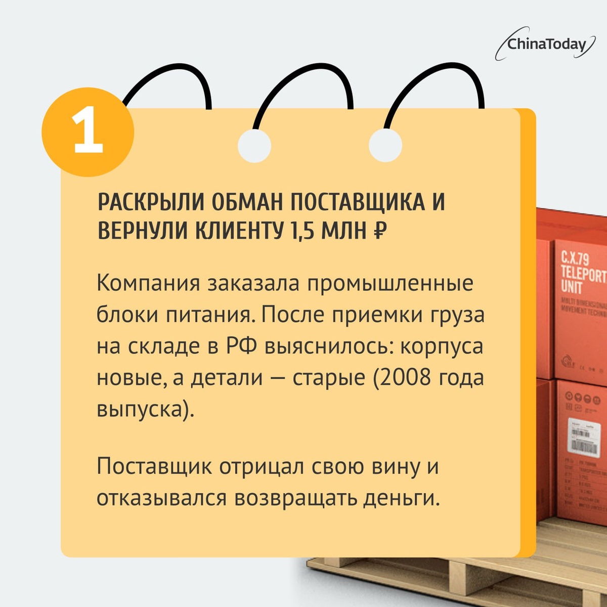 Мы связались с поставщиком и пригрозили ему, что проведем независимую экспертизу в Китае и взыщем деньги за некачественный товар через суд. Сначала поставщик шел в отказ, а потом понял, что дело серьезное, и признал вину. Вернул нашему клиенту деньги за товар ненадлежащего качества — 1,5 млн ₽.