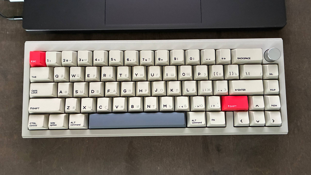 Клавиши имеют профиль Cherry, раскладка стандартная, разве что есть некоторые функциональные клавиши (del, pgUp, pgDn) сбоку (что приятно - обычно в форм-факторе 65% их нет).