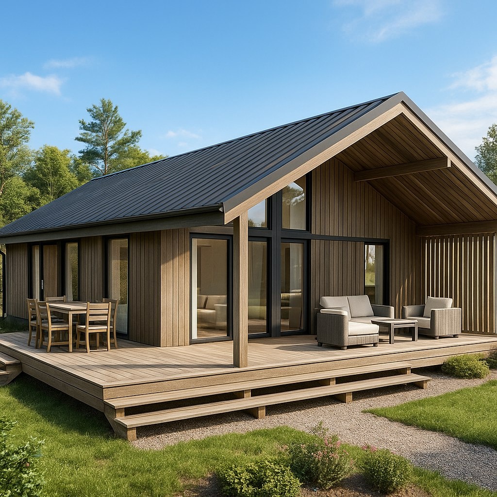 Компактные А-фреймы (44–61 м²) требуют наименьшего количества материалов. Но барнхаусы часто имеют лучшее соотношение цены к функциональности.