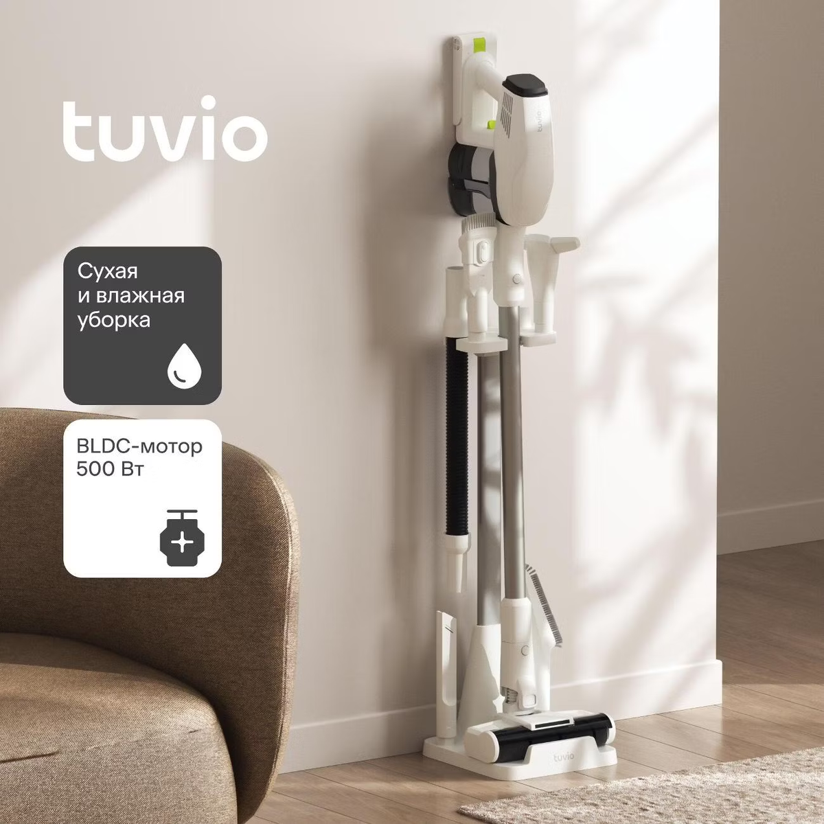 Если уборка — это то, что вы ненавидите в выходные, то такой пылесос как Tuvio TVC03S может изменить правила игры. Это вертикальный моющий беспроводной пылесос с мощным BLDC-мотором 500 Вт, который позволяет убрать: И всё это без провода, без суеты и лишних адаптеров. ⚙️ Мотор 500 Вт (BLDC)