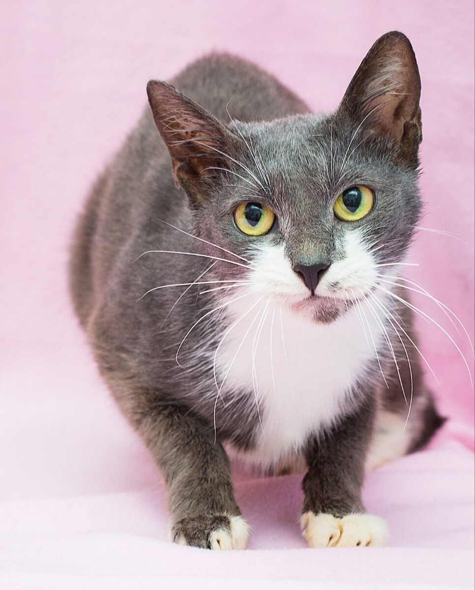 Ямаха — восьмимесячный котенок, ласковая, контактная, добрая малышка. Красивого голубого окраса, немного похожа на ориентала со своими большими ушками.