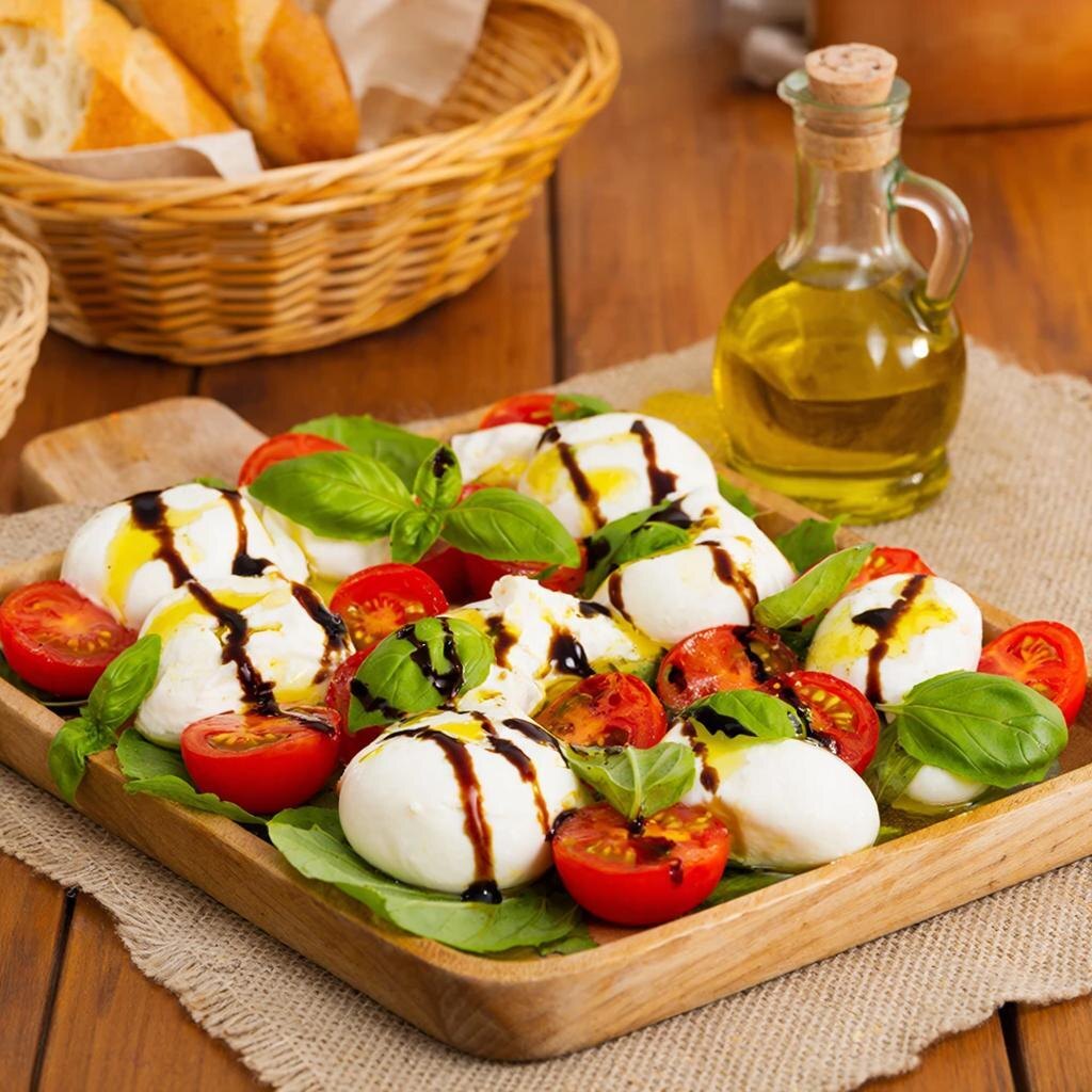 Капрезе — это классическое итальянское блюдо, состоящее из свежих помидоров, моцареллы, базилика и оливкового масла. Оно простое в приготовлении, но обладает ярким вкусом благодаря свежести ингредиентов. Вот подробный рецепт приготовления капрезе: