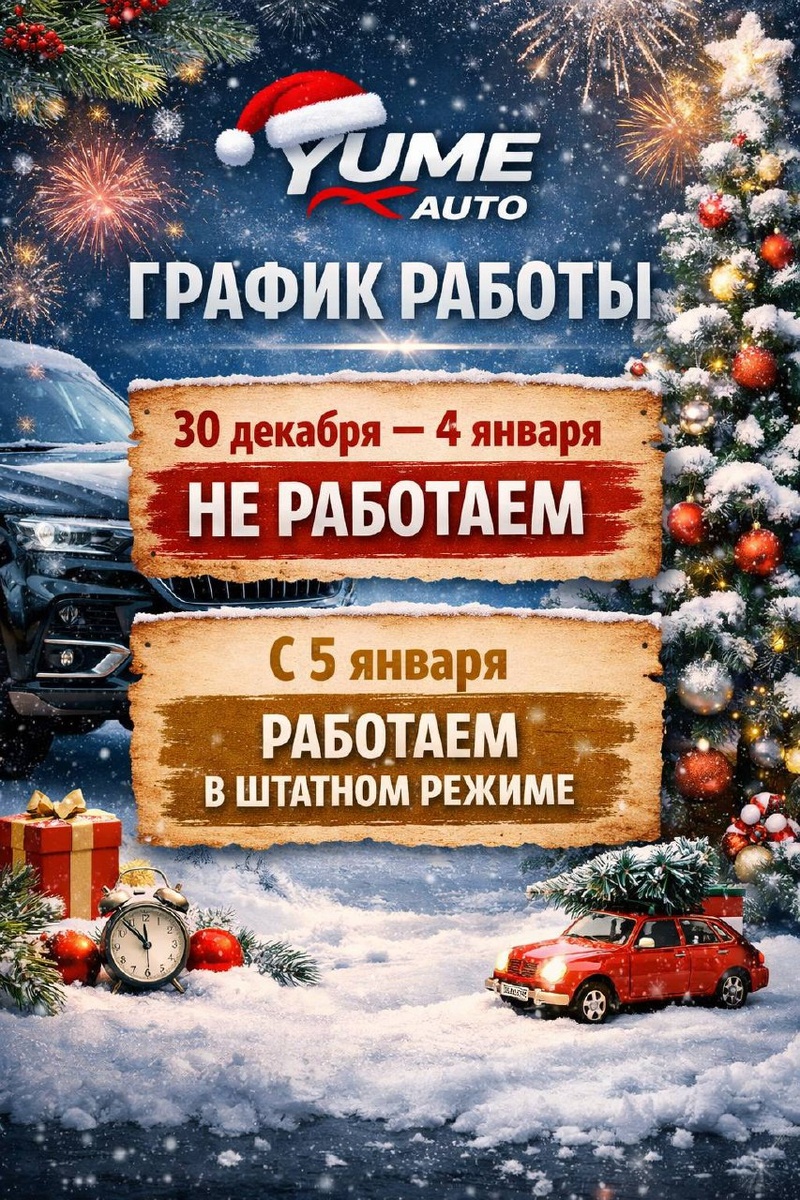 π Π Π΅ΠΆΠΈΠΌ ΡΠ°Π±ΠΎΡΡ YUME AUTO Π² Π½ΠΎΠ²ΠΎΠ³ΠΎΠ΄Π½ΠΈΠ΅ ΠΏΡΠ°Π·Π΄Π½ΠΈΠΊΠΈ