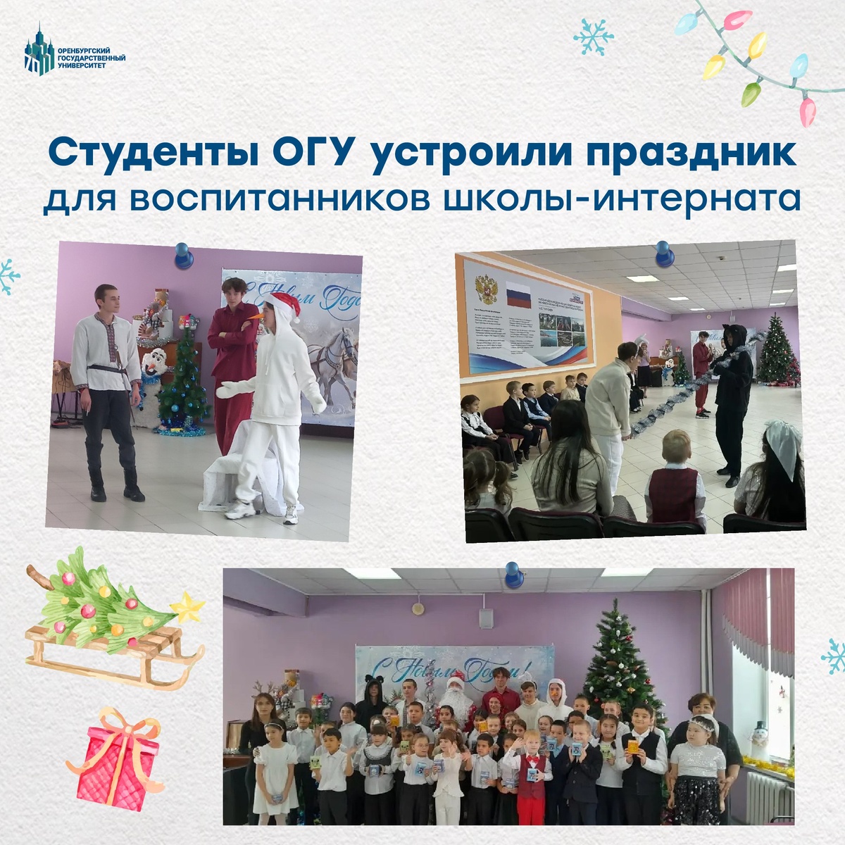 🎅 Студенты Аэрокосмического института подарили праздник воспитанникам санаторной школы-интерната №4. Добровольцы подготовили для детей яркий спектакль, где коварные планы Бабы-яги были сорваны благодаря дружбе сказочных героев и самих ребят. Программа продолжилась весёлыми играми, конкурсами и долгожданной встречей с Дедом Морозом. Каждый ребёнок получил от волшебника особенный подарок — набор LEGO для развития фантазии и творческих способностей. Мы гордимся нашими студентами, которые дарят тепло и веру в чудо ⭐ 📱Мы в MAX #ОГУ #в_ОГУ #OSU