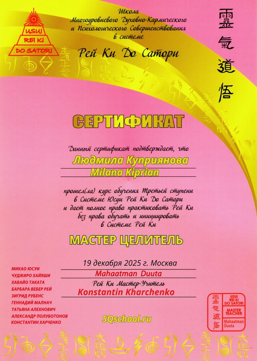 Поздравляем Людмилу и Татьяну - Новых Мастеров нашей Школы Рэйки До Сатори