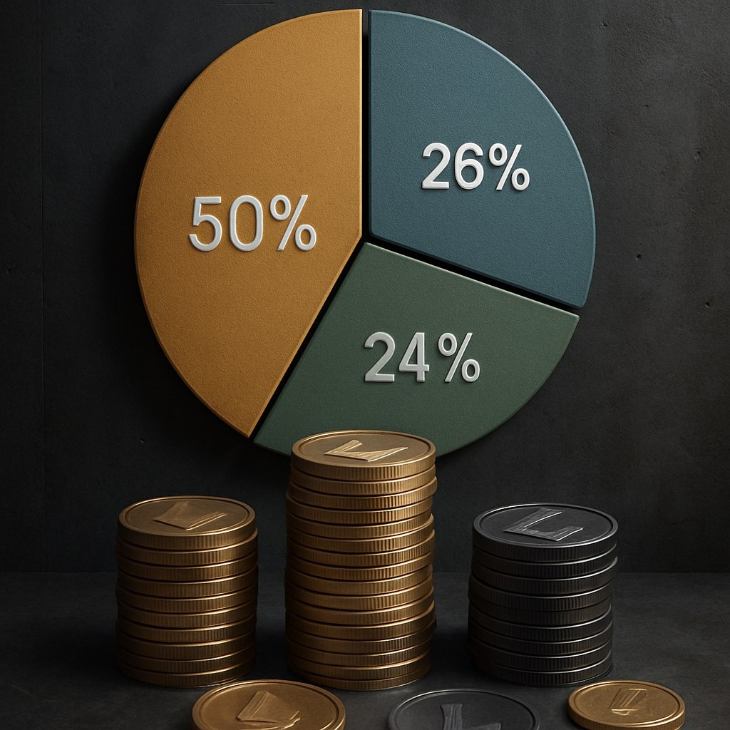 : 50% выделено сообществу, 26% - команде, 24% - инвесторам. Инвесторы и команда будут подвержены 1 году локапа и 3 годам вестинга. Выручка будет распределена между поддержкой роста проекта и выкупом с рынка на определенных условиях. Читать подробнее 🌐 Наши ссылки | Торгуем на Bybit | Торгуем на BingX