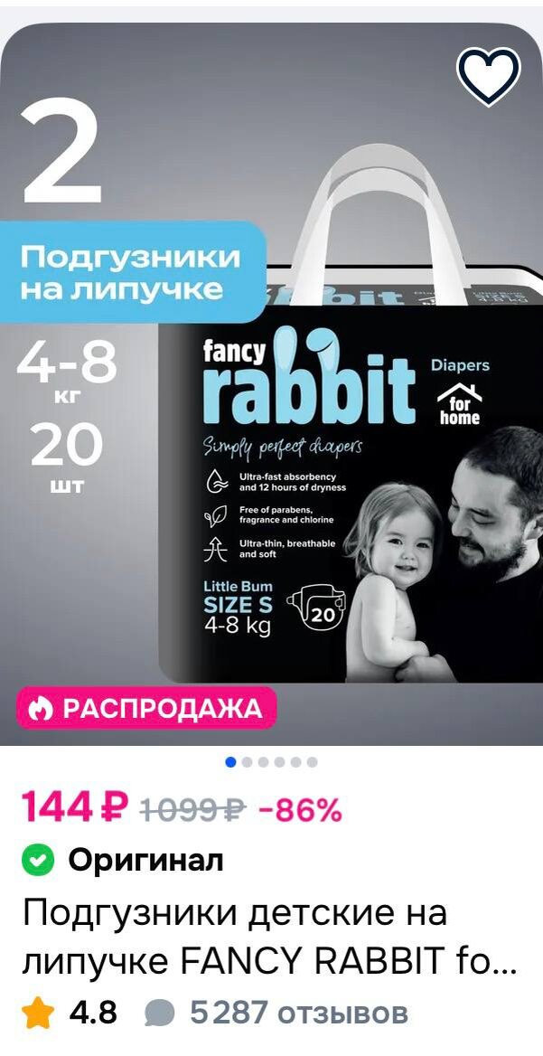 Подгузники детские на липучке FANCY RABBIT for home - размер 2 S (4-8 кг), 20 шт