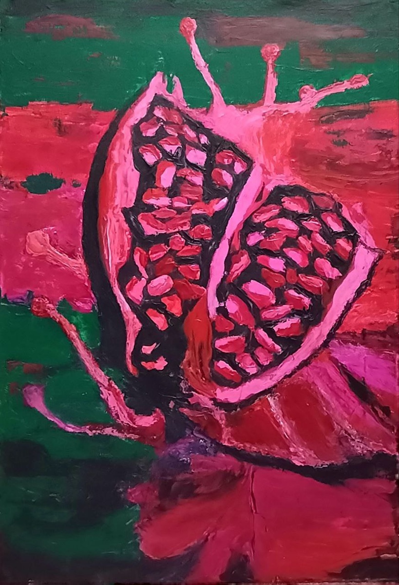 ) Огненная лошадь, говорят, любит красный цвет — спорить не буду 🙂 Я тоже сегодня за красный. Написала натюрморт «Гранат»: сочный, немного дерзкий, с характером. Он не про «просто фрукт», а про энергию, вкус жизни и когда внутри всё немного кипит. Этот гранат не просится на кухню — ему бы стену и хорошее соседство. Он умеет притягивать взгляд и тихо напоминать: радость бывает насыщенной. Если чувствуешь, что ему место у тебя дома — напиши мне. Картина ищет хозяина без спешки, но с интересом 😉 Акрил, холст 60×40 см.