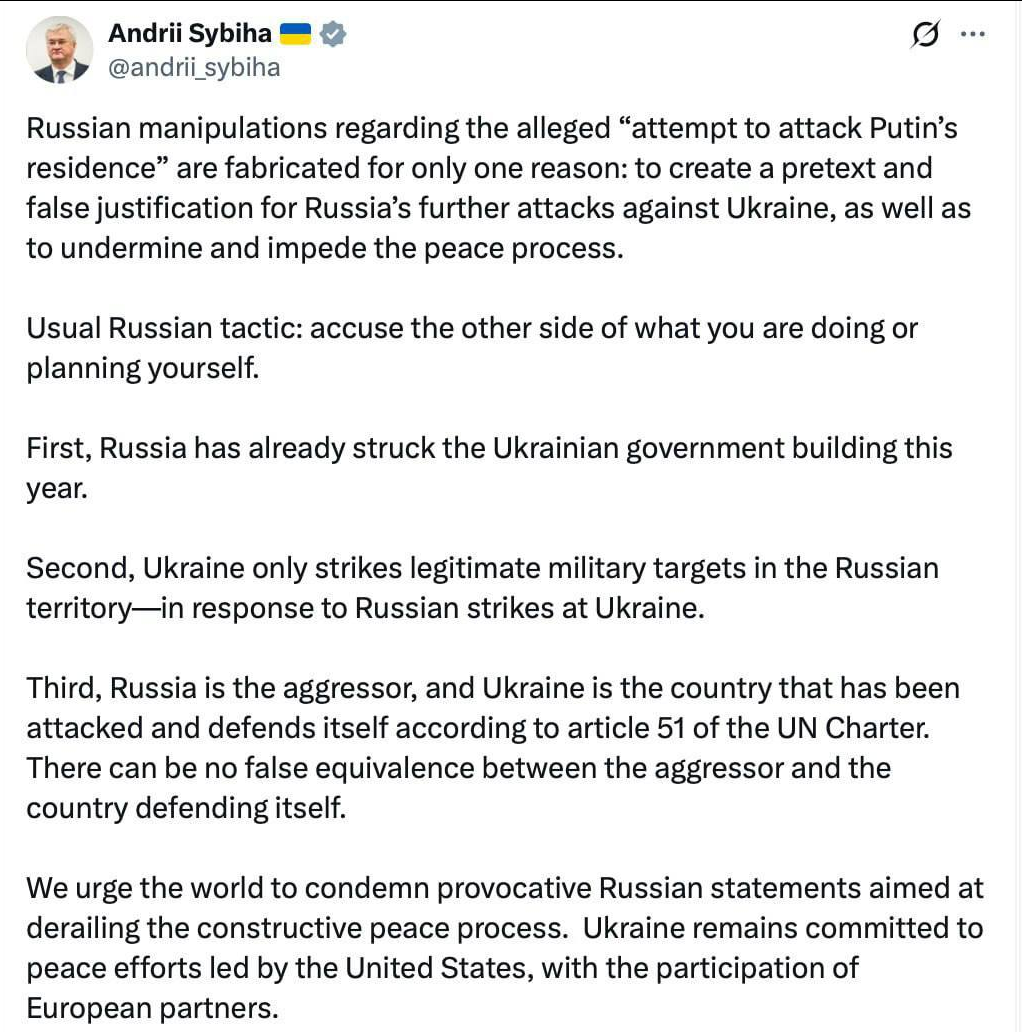 Глава МИД Украины Андрей Сибига заявил, что «российские манипуляции» относительно атаки дронов на резиденцию Путина «придуманы для создания повода и оправдания дальнейших атак РФ против Украины». Глава МИД Украины «призвал мир осудить провокационные заявления РФ», которые, по его мнению, направлены на «срыв конструктивного мирного процесса». …Представляю, как они хохочут, всё это сочиняя. – …срыв!.. Пиши!.. срыв!.. у-ха-ха!.. ой, не могу, погоди!.. направлены, пиши, на срыв конструктивного… мирного!.. у-ха-ха… процесса! Им смешно. Ну, в сущности, а чего им не смеяться? Им будет несмешно, только если у них Одессу заберут. Всё остальное им – смешно. Третий раз берём Купянск за 4 года, в почти недосягаемой попытке взять второй раз Славянск за 12 лет. Это если про результаты прямым текстом. Люди периодически пишут мне: «Ждём с победой». Я всё пытаюсь понять, что они имеют в виду конкретно. Какую такую «победу». ВСУ бомбят Валдай. Перечитайте это ещё раз. Так мы встречаем 2026 год. Спросят: