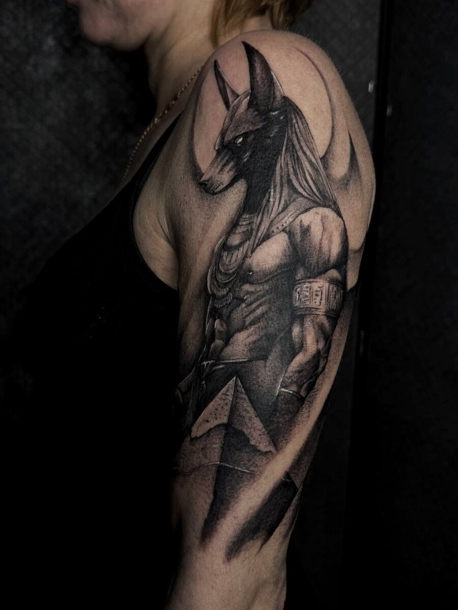 🖤✨ Работа мастера Сергей: ч/б реализм на плече/бицепсе — плотные тени, фактура и чистые переходы, которые круто читаются по анатомии 💪🏽🖤 📩 Запись в Telegram: Академическая Арбат #тату #татуировка #татумосква #миртату #арбат #академическая #blackandgrey #реализмтату #анубис #египетскаятату #мастерСергей #tattoo #tattoomoscow