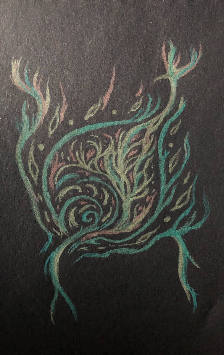 Я вижу в работе: образы людей в природных мотивах, тепло костра 🔥, деревья 🌳, лес и рядом его духи, к которым уважительно и с почтением относятся люди. Другая работа для меня связана с разными образами. От глаз 👀, рыб 🐟, перьев🪶 Жар-птицы до баланса всего живого, перехода из одного состояния в другое. Третья о росте на всех уровнях, взгляде 👀 на себя со стороны, необходимости быть иногда в роли наблюдателя и внимательного слушателя, отслеживать свои эмоции, работе над собой. 🙏 Надеюсь, что часть моих работ приносили вам гармонию, желание фантазировать, погружаться в себя, в свой мир 🌍. #ЗарисовкиНадеждыSN #абстракцииНадеждыSN #благодарность