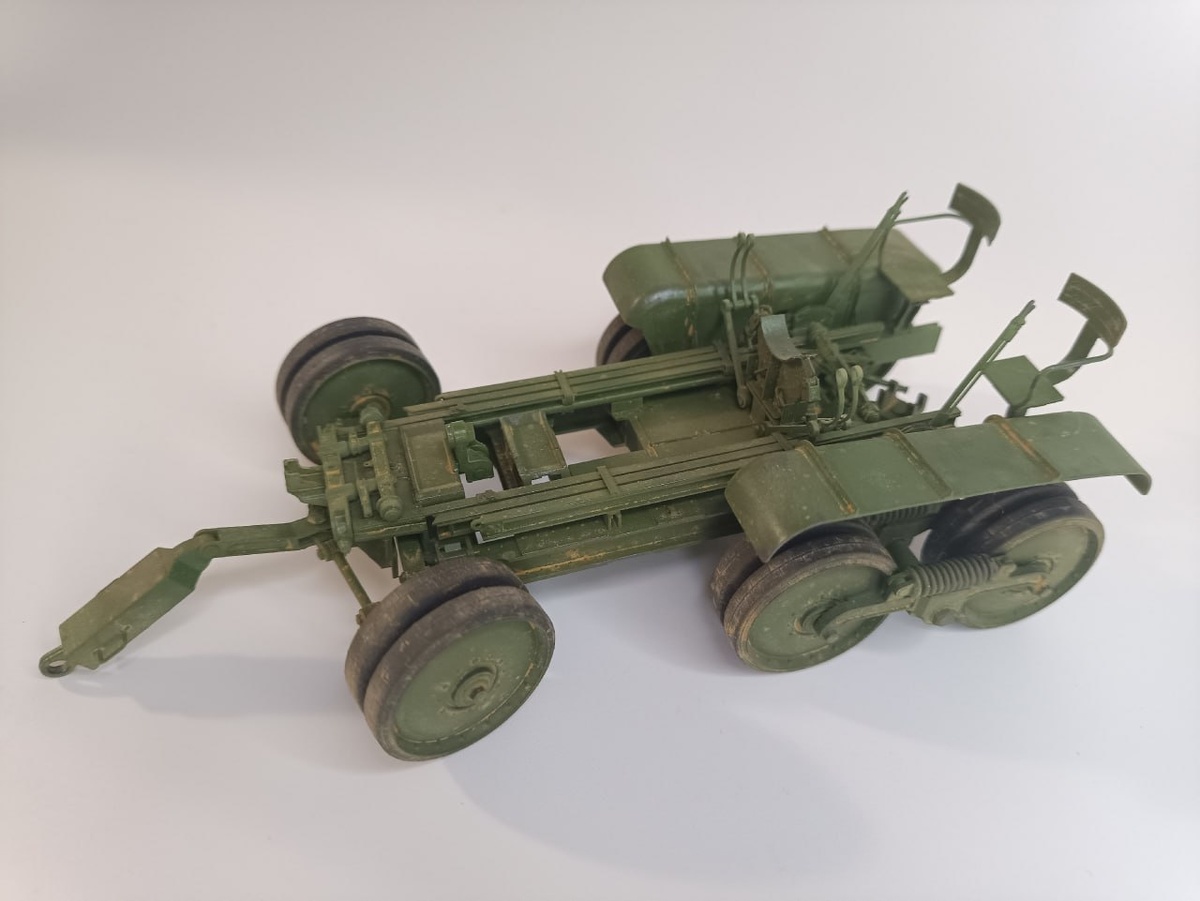 Поворотная передняя ось, тяги собираются на клик, воспроизведены тормозные механизмы, стяжки для фиксации ствола в положении "по-походному", каретки для перемещения ствола по рельсам В работе инструкция по сборке Уточнить информацию по повозке, а так же заказать точёные стволы для Б-4 и конверсию БР-5 можно через kWk.