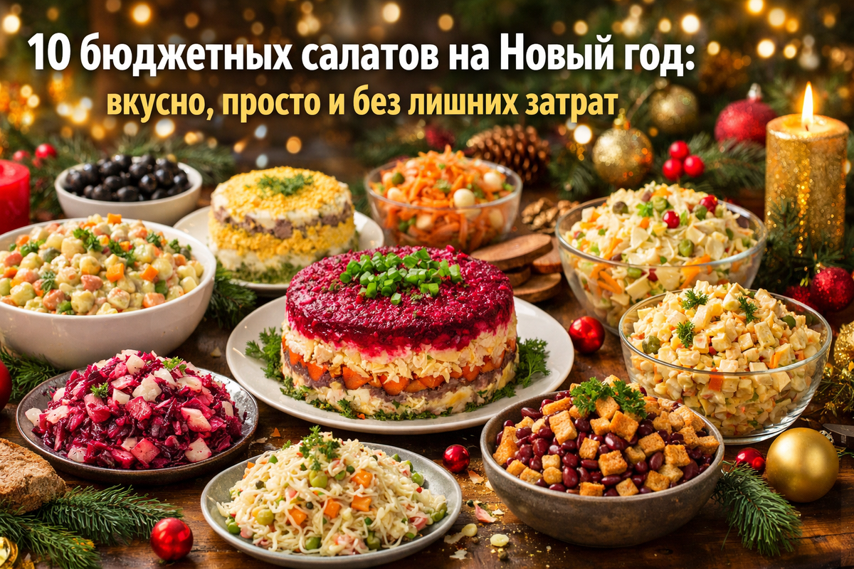 Эти 10 бюджетных салатов помогут вам накрыть новогодний стол, не потратив лишнего. Все рецепты – из доступных продуктов, готовятся быстро и всегда получаются вкусно. Классика, которую любят все.