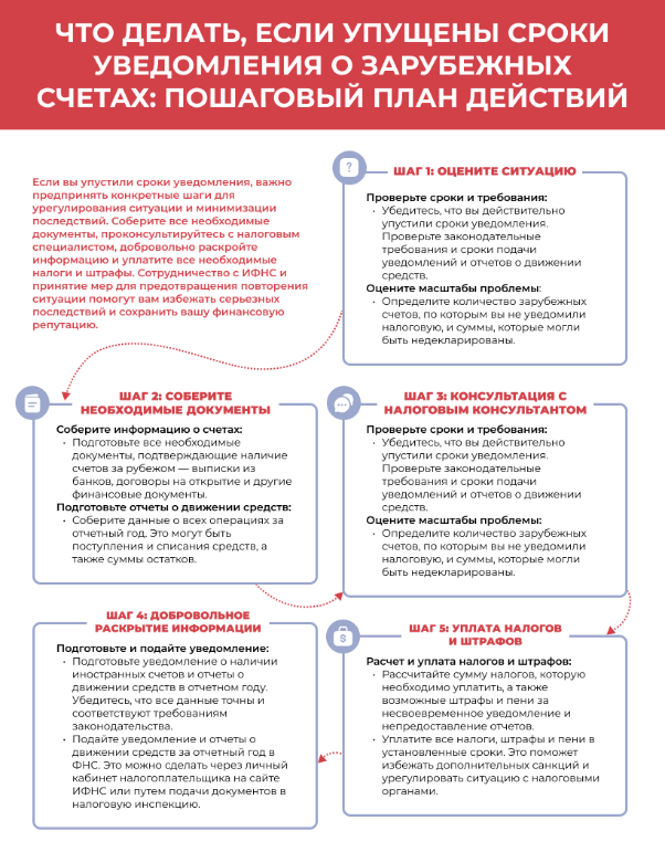Что делать, если упущены сроки уведомления о зарубежных счетах: пошаговый план действий