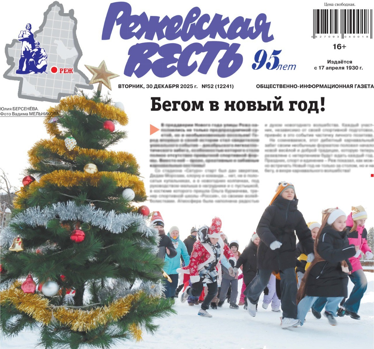💥 Мы с удовольствием представляем вам наш финальный выпуск газеты в этом году! • Впервые в Реже прошел предновогодний легкоатлетический забег, особенностью которого стало полное отсутствие привычной спортивной формы. Как это было читайте на главной странице газеты. • Как прошел декабрьский приём главы по личным вопросам? Узнаете в рубрике новости администрации. • В рамках Всероссийской акции «Ёлка желаний» осуществилась мечта девочки Варвары, которая получила неожиданный подарок прямо во время танцевальных занятий. Подробности на стр.9. • В нашем городе появился на свет истинный богатырь – Добрыня Никитич! О том, какие ещё имена выбирали родители для своих малышей в Реже, вы можете прочитать на 9-й полосе • Также на стр.9 узнаете, кто стал новым собственником территории и зданий бывшего никелевого завода. • Учреждения культуры завершают год с наградами. Рассказали об итогах на стр.10. • А также вы найдете календарь на 2026 год, гороскоп и добрые поздравления с новым годом!