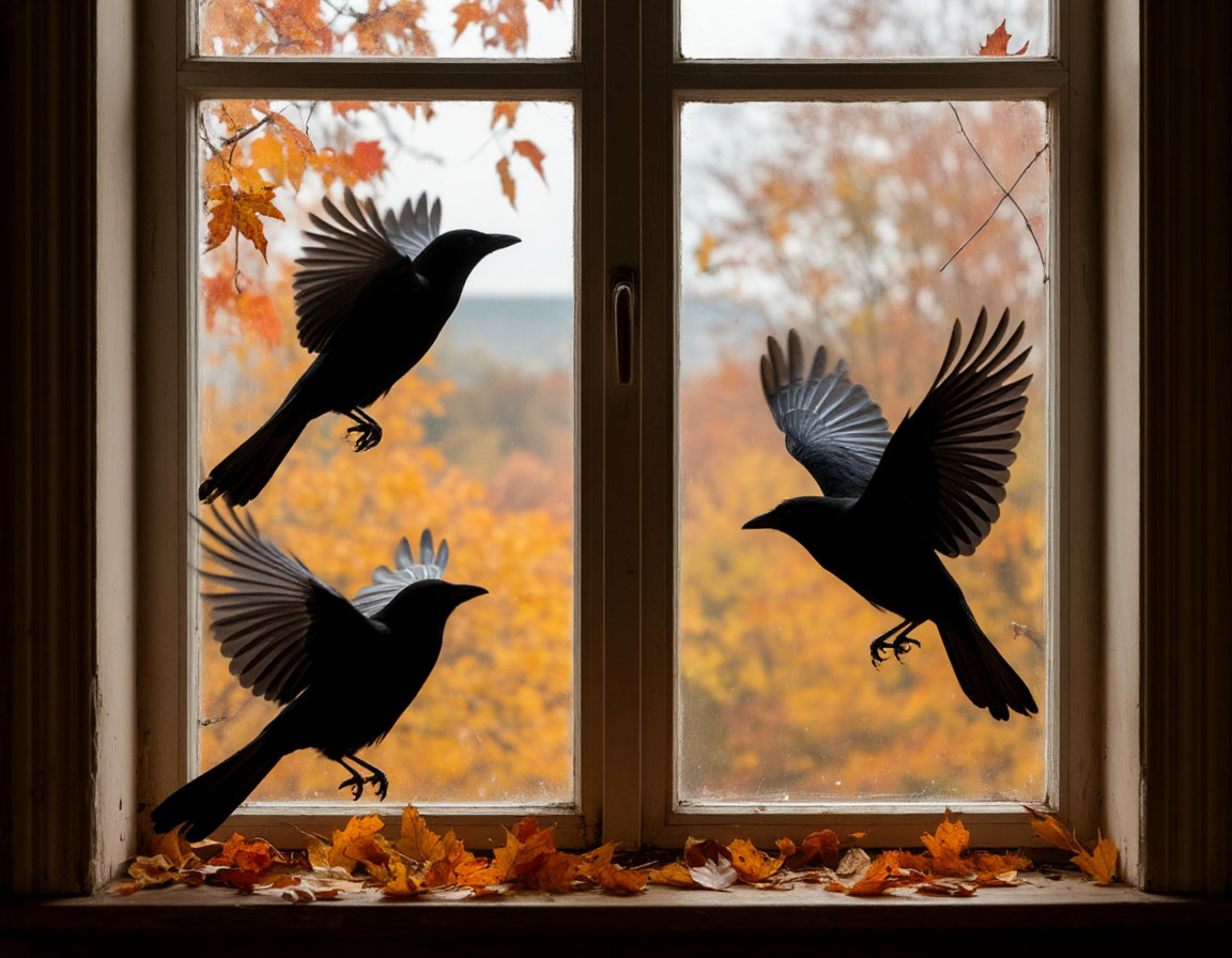 Первая птица, сделав круг у окна, упала на пол и подскочила с него молодым черноволосым парнем. Парень кинулся к окну и начал дёргать ручку.