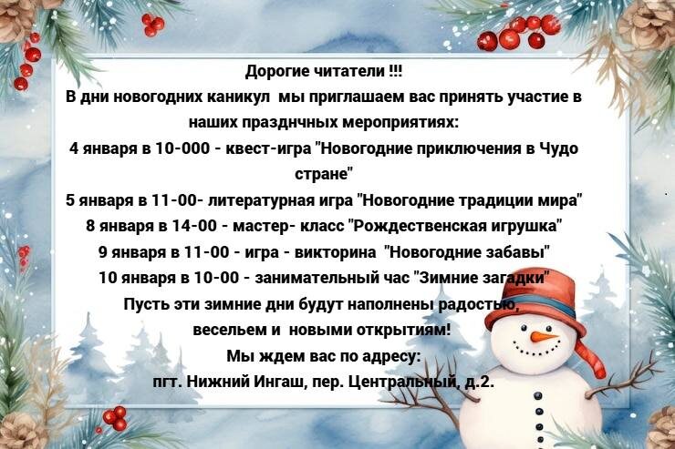 С. Устиновича приглашает всех желающих на увлекательные праздничные мероприятия. Вас ждут интересные викторины, творческие мастер-классы и литературные игры. Проведите время с пользой и хорошим настроением. Не упустите шанс окунуться в мир книг и творчества. #НижнийИнгаш #БиблиотекаУстиновича #КультураКрасноярья #Мероприятия #ГазетаПобеда