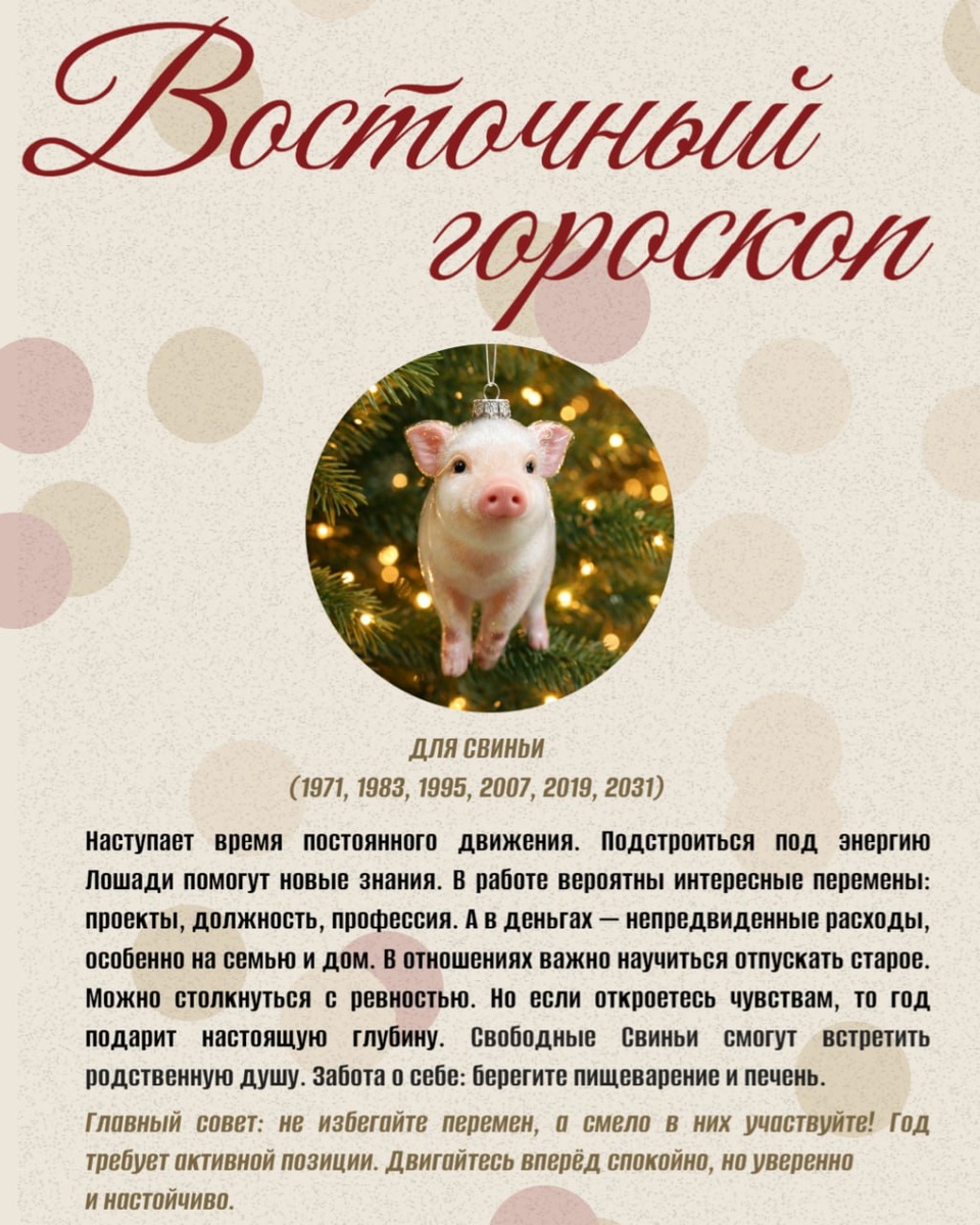 Звёзды советуют: не позволяйте неуверенности сдерживать ваши амбиции! Если перестанете сомневаться в себе и довольствоваться малым, то сможете реализовать свои самые смелые замыслы. Храбро просите то, чего заслуживаете — как в финансовом плане, так и в плане уважения. Помните: Вселенная награждает тех, кто не прячется. Что ещё? Нажимайте на картинку и читайте наш гороскоп! #Новыйгод2026 #ВосточныйГороскоп2026 🔵Проголосовать за канал ❤️ Импульс Севера | Подписаться в MAX