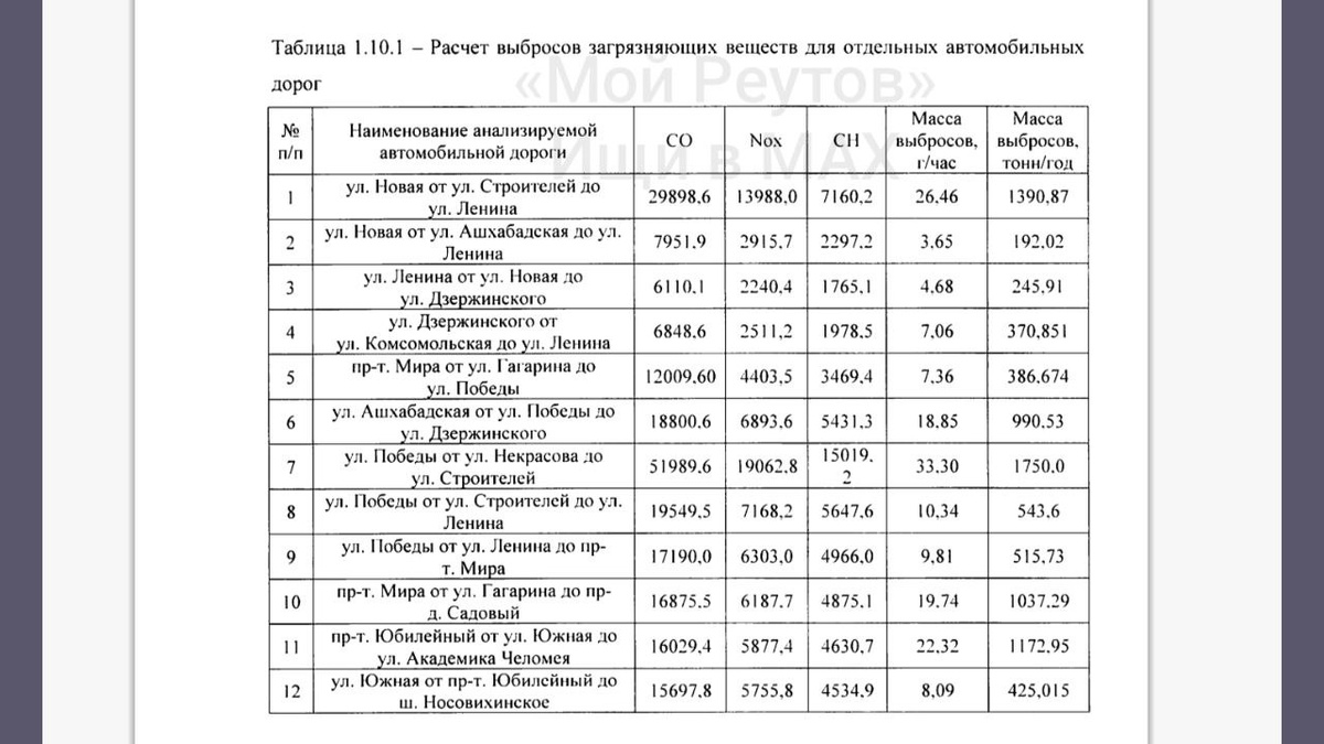 Досталось и южной, и северной частям наукограда. Звание самой "грязной" достаётся участку улицы Победы (от Некрасова до Советской). Масса выбросов здесь составляет 1750 тонн в год. На втором месте Новая - от Строителей до Ленина (1390,87 тонн в год). Замыкает тройку лидеров Юбилейный проспект - от Южной до Челомея - (1172,95 тонн в год). В списке значатся и другие дороги. Например, Ашхабадская, Дзержинского, проспект Мира, Южная. 📲 «Мой Реутов» в MAX