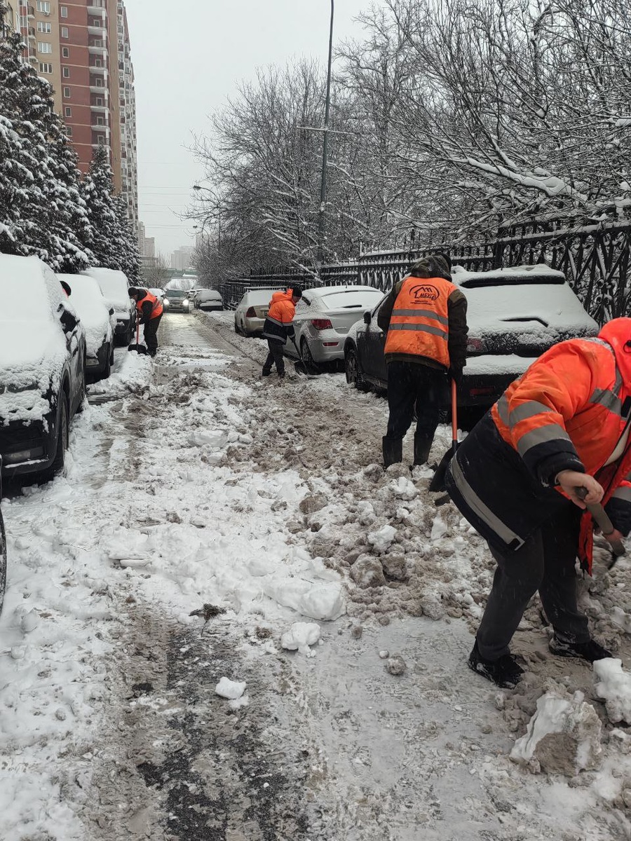 Работники МБУ (подразделение администрации Одинцово) ударными темпами убирают выпавший снег и передают самые теплые и искренние поздравления