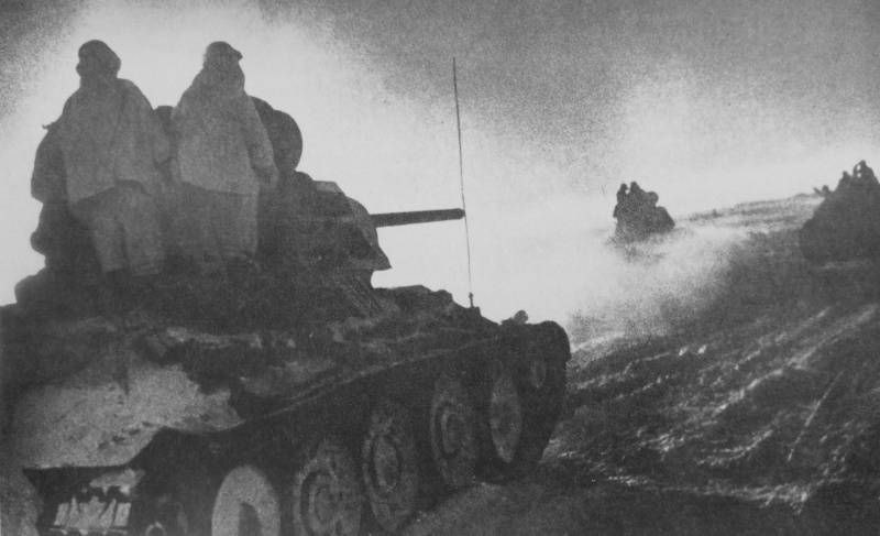 1.Советские танки Т-34 с солдатами на броне на марше в заснеженной степи во время Среднедонской наступательной операции 2. Колонна румынских военнопленных под Сталинградом 30 декабря 1942 года завершилась операции "Малый Сатурн" 16-30 декабря 1942 года силы Юго-Западного и левого фланга Воронежского фронта провели операцию «Малый Сатурн» (Среднедонская наступательная операция). Советские войска прорвали оборону противника и разгромили основные силы 8-й итальянской армии, оперативной группы «Холлидт» и 3-й румынской армии. Вермахт израсходовал силы, предназначенные для наступления на Сталинград, и отказался от дальнейших попыток деблокировать окруженную там группировку Паулюса, что предрешило её судьбу и привело к коренному изменению обстановки на сталинградско-ростовском направлении (и на всём советско-германском фронте). Гибель итальянской армии на Дону вызвала буквально шок в Риме. Взаимоотношения между Италией и Германией резко ухудшились. Рим фактически перестал быть союзником Г