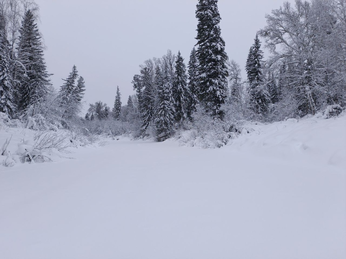 на снегоходе по наледи крайне опасно и часто невозможно, так как лёд может быть тонким или неоднородным, с плохим сцеплением и риском провала, особенно у берегов или в местах течений, где лёд рыхлый; нужно минимум 12-15 см прозрачного льда. В итоге, чтобы "протоптать" дорогу, пришлось временно бросить сани🫥