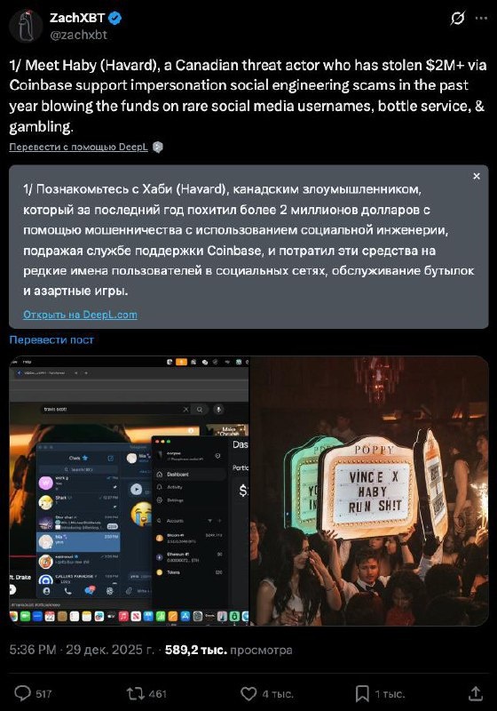 π ZachXBT ΡΠΌΠΎΠ³ Π½Π°ΠΉΡΠΈ ΠΌΠΎΡΠ΅Π½Π½ΠΈΠΊΠ° ΠΈΠ· Telegram, ΠΊΠΎΡΠΎΡΠΎΠΌΡ ΡΠ΄Π°Π»ΠΎΡΡ ΡΠΊΡΠ°ΡΡΡ ΠΎΠΊΠΎΠ»ΠΎ $2,000,000 β ΠΎΠ½ ΠΏΡΠΈΡΠ²ΠΎΡΡΠ»ΡΡ ΡΠΎΡΡΡΠ΄Π½ΠΈΠΊΠΎΠΌ ΠΊΡΠΈΠΏΡΠΎΠ±ΠΈΡΠΆβ¦