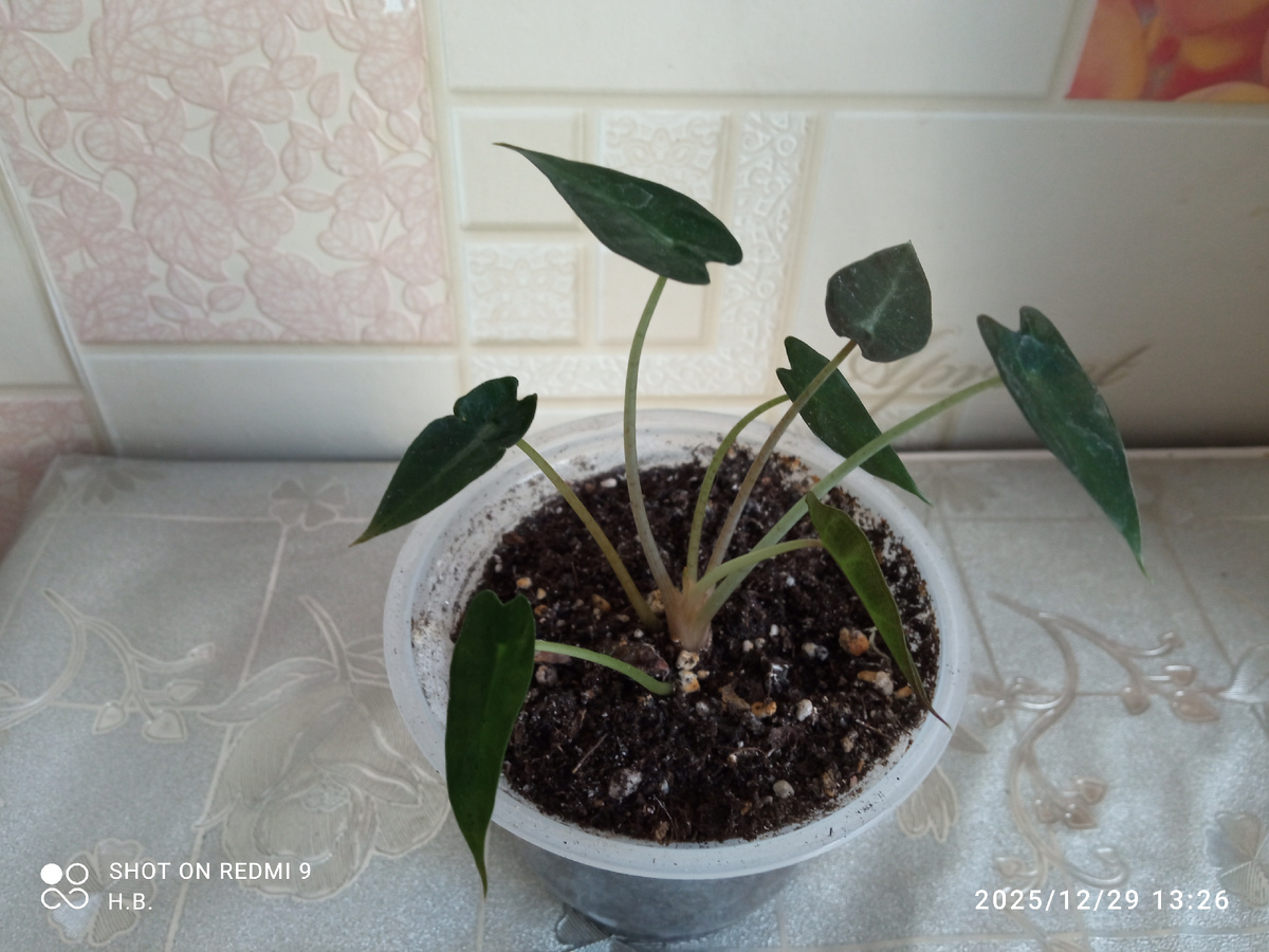 Здравствуйте 🌺 Вчера полдня занималась своими растениями: сеяла, пересаживала, поливала. Решила поэкспериментировать и перевести некоторые растения на фитильный полив. Выбрала для этого растения, которые у меня есть в нескольких экземплярах на случай, если что-то пойдет не так. Алоказия бамбино эрроу - одна из неприхотливых алоказий. Очень любит попить. Пристроить растения из клубней не удалось, поэтому есть возможность посмотреть, как алоказия будет расти в разных условиях. Следующий претендент на фитильный полив - мирт тарентино. Вырастила его из семян. Приспособиться к поливу никак не получается - то заливаю, то засушиваю. Поэтому попробую фитильный полив. Возможно, стабильно влажный грунт понравится мирту. Еще на фитильный полив пойдет алоказия регал шилдс. Взрослого растения давно уже нет, а клубней осталось много. Они прорастали в разное время. Что-то удалось продать. Осталось четыре малыша. Так что есть возможность сравнить, как будет расти алоказия в грунте и как на фитиле. Г