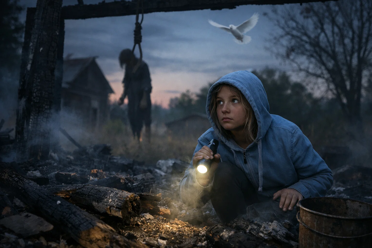 Бабушка лишь вздыхала: «Может, собаку кто повесил да сжег?». Но ребята стояли на своем: «Человек это, Маня! У собаки ноги по-другому висят!». Позже пошли слухи о белом голубе, который кружит над пожарищем, хотя голубей в округе никто не держал, и о внезапном запахе гари, возникающем ниоткуда среди ясного дня.