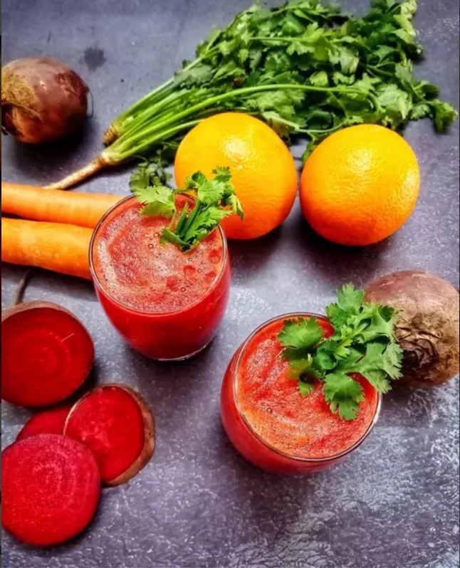 ✔️ Свекольно-морковный смузи не только вкусен, но и полезен для здоровья. Этот детоксицирующий напиток усиливает кровоток и снижает кровяное давление. Этот чудо-напиток полон необходимых питательных веществ и антиоксидантов, снижает уровень глюкозы в крови, повышает энергию и выносливость, улучшает процесс пищеварения и даже полезен для кожи. Помогает повысить иммунитет. Он избавляет от многих проблем со здоровьем, если его принимать регулярно. ⌛ Время приготовления: 15 мин. 👪 3 порции 📜 Что понадобится: 1 свекла 2 моркови 1/4 стакана листьев кориандра 1/2 стакана апельсинового сока 1 ч. л. каменной соли 1/2 ч. л. чат масалы 1/4 ч. л. молотого черного перца 3 стакана воды ♨️ Как приготовить: Морковь и свеклу вымойте, очистите и мелко нарежьте. Подготовьте другие ингредиенты для смузи. Добавьте все в емкость миксера, налейте воды и хорошенько измельчите, как можно более мелким. Вы можете подавать его сразу же, или можно процедить и подавать как сок. ↘️ Подробнее: https://indianspices