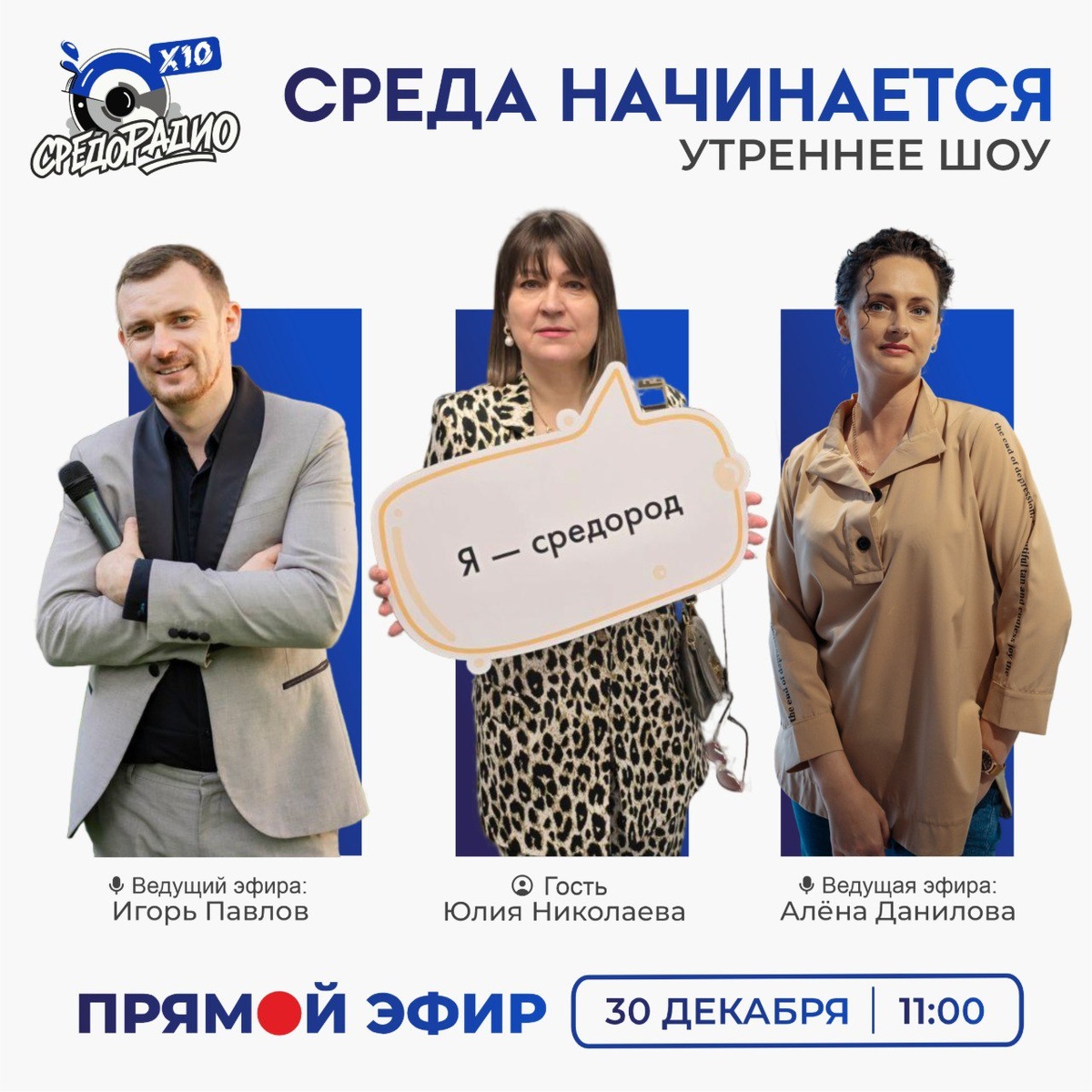 🎙 Вторник, 30 декабря 11:00 по мск ☀️ Утреннее шоу «СРЕДА НАЧИНАЕТСЯ» Ведущие: Игорь Павлов и Алёна Данилова и к нам в эфир приходит ЮЛИЯ НИКОЛАЕВА — женщина, чей путь в Силе Сообществ звучит как живая симфония роста, смелости и включённости 💫 Это история не «про должности и регалии». Это история про человека, который однажды почувствовал: 👉 «Мне нужно настоящее общение. Мне нужен круг. Мне нужна среда». С первого оффлайн-клампа — через Форум кламперов, Х10Nation, Игру на миллиард, Школу Клампера, «Предприми себя», лидерство в СВАО Москвы — до Мастера 5 уровня, Амбассадора Игры, соорганизатора ключевых событий Х10 Движения и создателя двух мощных оффлайн-клампов. Юлия — это: ✨ сила круга, прожитая телом; ✨ поле безопасной уязвимости, созданное руками; ✨ лидерство без пафоса, но с глубиной; ✨ женщина, которая вдыхает жизнь в замыслы и запускает движение там, где другие сомневаются. СРЕДА НАЧИНАЕТСЯ — и она начинается с людей. До встречи в эфире ✨ Эфир: https://myradio24.com/5559