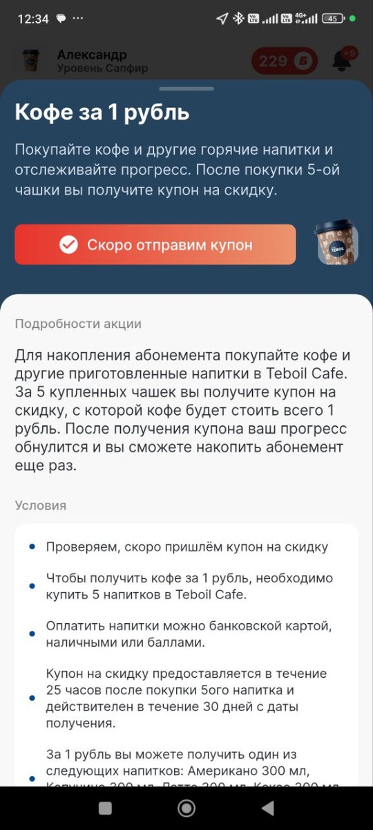 В Тобойле накопил купоны.... Могу кофе в 300 мл взять за один рубль 😁☕