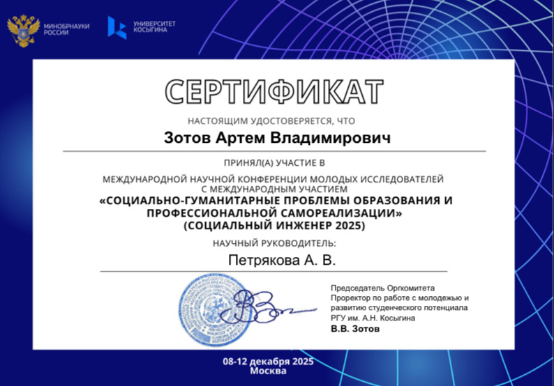 Мероприятие собрало перспективные кадры из разных стран, заинтересованные в обсуждении актуальных социальных и технологических вызовов. Артём выступил в секции «Право и правовые технологии в современном обществе», где представил результаты своего исследования на тему «Портал Госуслуг в контексте административного права».