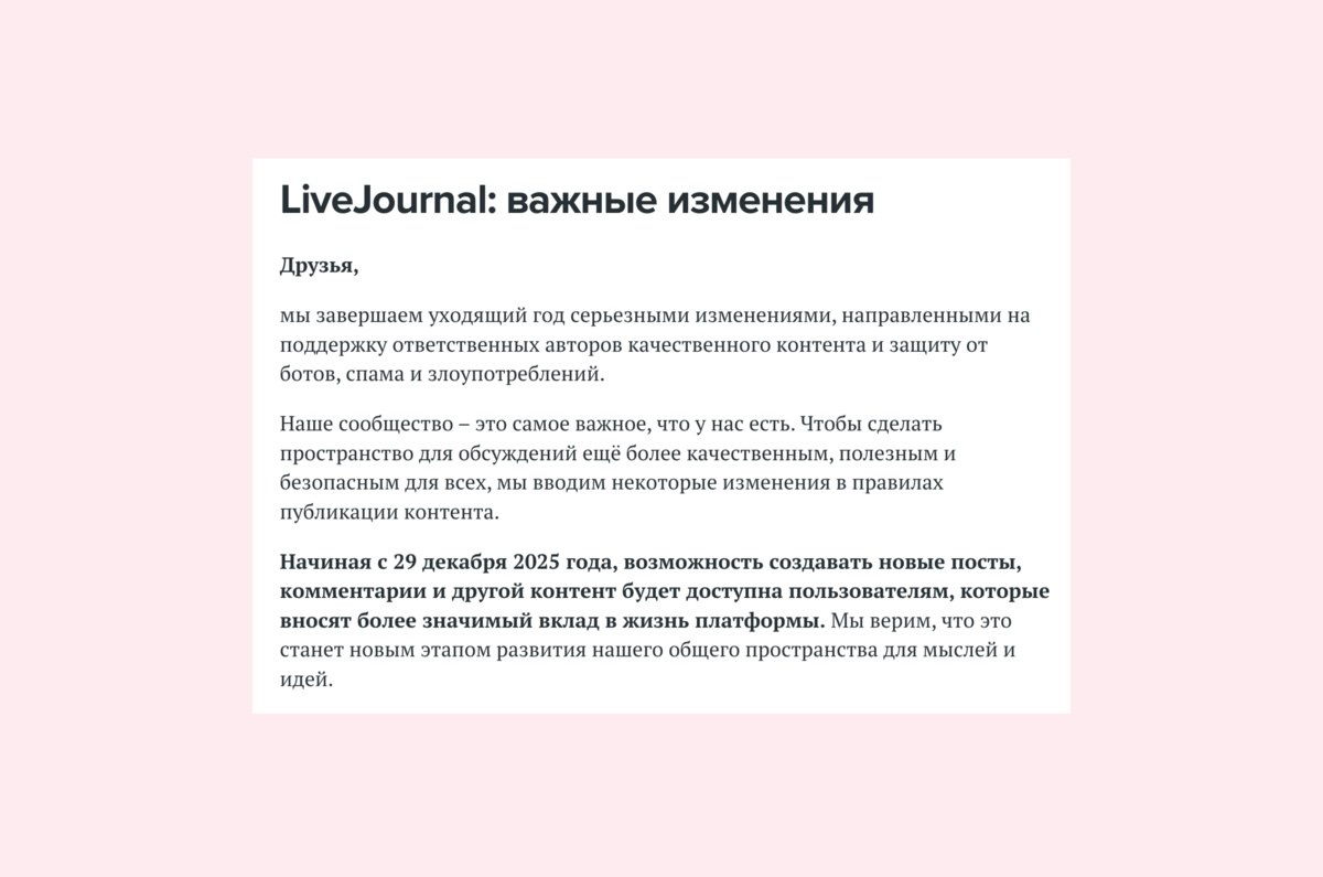 «Живой журнал» ограничил возможность публиковать посты, комментарии, фотографии и видео — чтобы снизить «уровень тролинга и спама