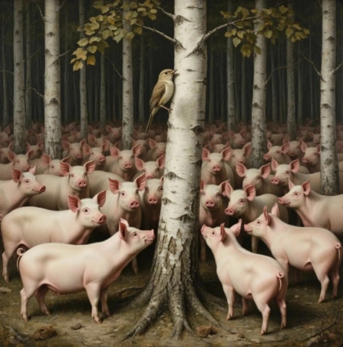 И в рощу стало заходить сообщество свиней