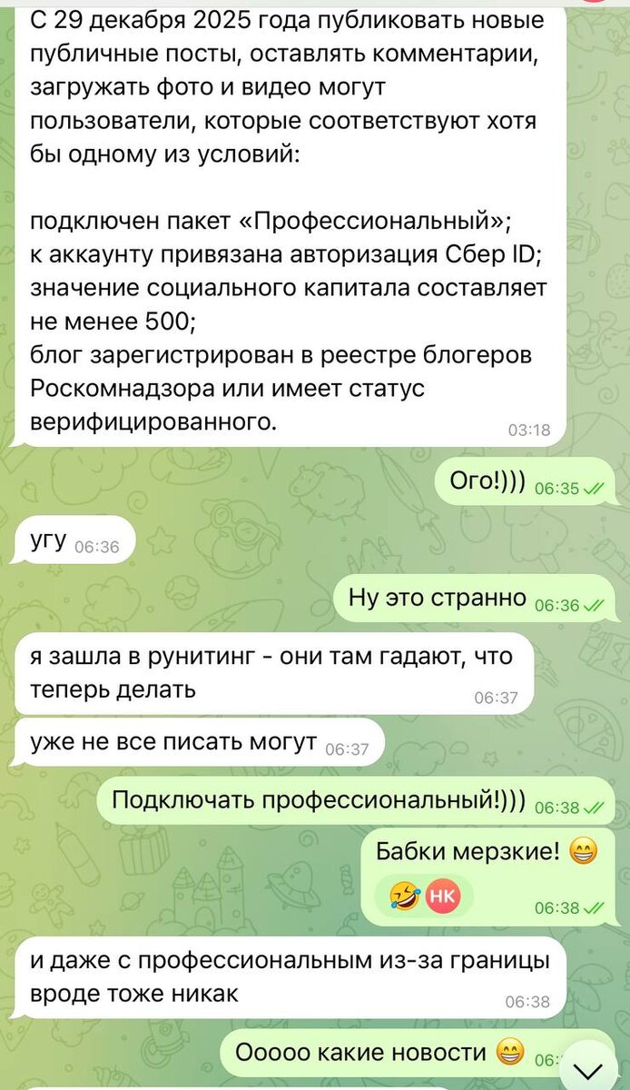 ! Три раза я заводила блог в ЖЖ. Его удалял мой муж из злобства в период развода. Его удаляла я после публикации фоток с занятий сами знаете с кем (но он был сфоткан со спины и без головы! Почему напряглись безопасники, не постигаю!) Последний вариант стал популярен на почве войны и толстых. Я постила фотки из Мариуполя и периодически спрашивала женщин, насколько им дорог их целлюлит, что они берегут его изо всех сил и всячески поддерживают 😁 и те, и другие посты аудитория выводила в топ! Лет 10 назад произошла в ЖЖ история. Я опубликовала в вязальном сообществе пост со своими вязаными вещами. Ничего особенного, обычный пост. Я не думала, что тётки там воспринимают это как приглашение к оценке и раздаче советов. К концу дня прочла комменты и сделала апгрейд - написала внизу поста, что пост не имеет целью узнать мнения всех тех, кто мне не интересен, просто хвастаюсь. Ой шо было 😈😁 А теперь это бабьё бьется в конвульсиях из-за необходимости оплатить пакет «Профессиональный» ббгг