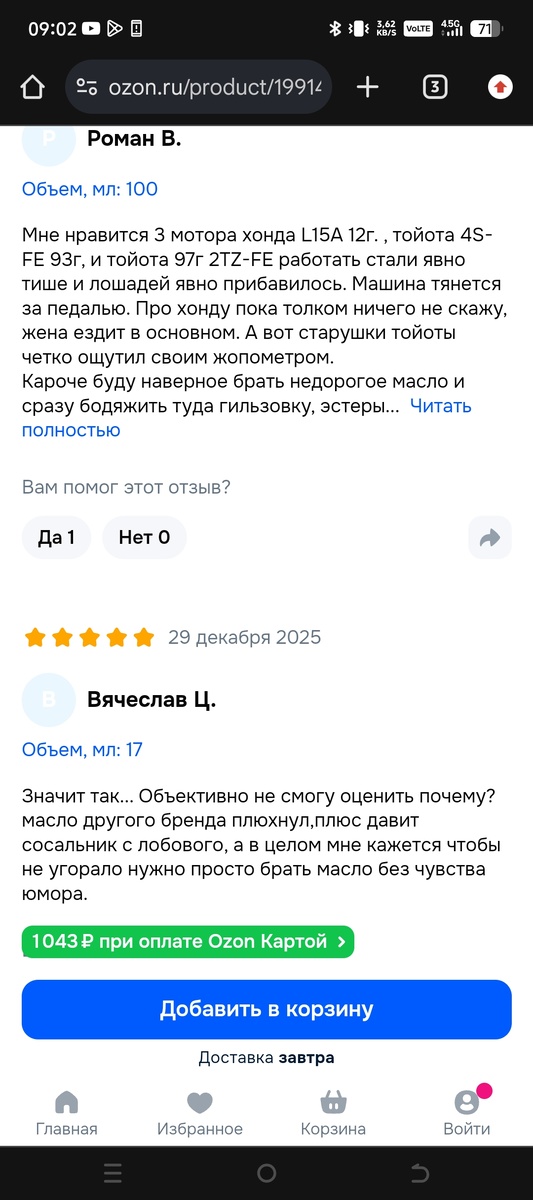 1. Есть отзывы, которые к примеру продавцы попросили написать своих знакомых или их писали просто внушаемые люди, что товар отличный. Такие отзывы лайками поднимают в самое начало отзывов(так как изначально идет сортировка по полезности отзыва, а чем больше лайков, тем озон считает отзыв более полезным) Как ч этим бороться - листать в низ или делать другую сортировку в настройках 2. Настраивают страницу продажника так, что отзывы идут сразу на несколько видов товаров. Тут нужно выбрать "этот вариант" 3. Баллы за отзывы. Большинство людей не попробовав товар просто пишут, что все пришло в целости и сохранности , а то что там например бесполезная присадка, они этого ещё не знаю, а потом забывают исправить отзыв В общем будьте чуточку умнее , а то али почитать к примеру отзывы о БАДах, складывается ощущение, что выпив 5 разных видов будешь ходить сквозь стены, хотя по факту в большинстве случаев если человек нормально питается, он эти самые вещества получает из еды Кто со мной согл