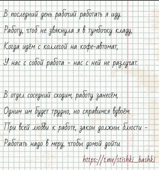#работа #предпраздничнаяработа #стишкиизбашки Стишок каждый день для настроения @stishki_bashki 📹 - видеостишки тут 👈 🙊 - а тут можно комментировать 👈 Поделитесь стишком с друзьями