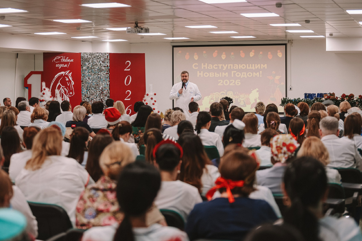 Чем запомнился 2025 год, в чём удалось добиться рекордных показателей и насколько многонациональной оказалась ОКБ № 1, — об этом узнали гости и медицинский персонал на торжественной планёрке «Новогодний праздник единства и силы — многонациональный хоровод здоровья». Это уже стало традицией — приглашать почётных гостей, подводить итоги и награждать лучших сотрудников терапевтического и хирургического стационаров в конце года. 2025 год в очередной раз подтвердил, что ОКБ № 1 остаётся лидером в областном и федеральном здравоохранении. Медицинский персонал внёс огромный вклад в достижение поставленных целей, за что был отмечен на высоком уровне. Это подчеркнула в своём поздравлении директор департамента здравоохранения Тюменской области Наталья Валерьевна Логинова: «Первая областная больница по-прежнему остаётся первой. Ваш вклад в реализацию национального проекта неоценим. Для меня большая честь поздравить вас с наступающим Новым годом и поблагодарить за проделанную колоссальную работу».
