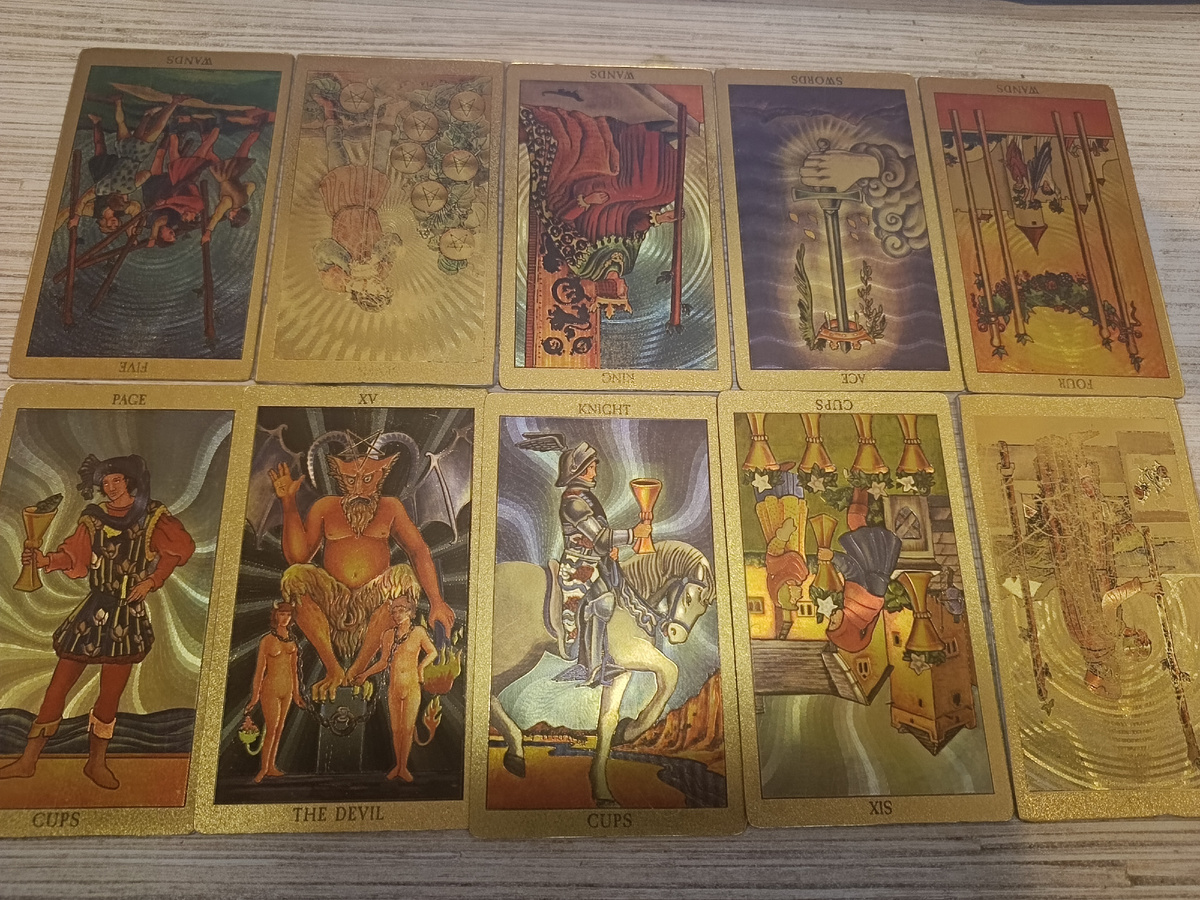 ....Дьявол указывает на сохранившуюся связь, сильную привязанность и, возможно, плотское влечение.... Дорогие дамы, добро пожаловать! С вами Наталья — таролог, астролог и нумеролог с более чем семилетним опытом. Сегодня мы обратимся к потоковому экспресс-раскладу на волнующий вопрос: вернётся ли бывший любимый мужчина в новом году? Этот расклад — для тех, чьё сердце всё ещё хранит привязанность, тепло и надежду, но где диалог сейчас прерван, а будущее остаётся неясным. Итак, обратимся к картам. Перед нами Пятерка Жезлов в перевёрнутом положении. Она говорит о конфликте между вами — не о яростной ссоре, но, скорее, о глубоком недопонимании, которое и привело к резкому прекращению общения. Далее — Семерка Пентаклей перевернутая. Она указывает, что с его стороны в отношения были сделаны определённые вложения, эмоциональные или иные. Сейчас эти вложения словно заморожены, но их ценность для него не исчезла. Причина его ухода раскрывается в Короле Жезлов перевернутом. Конфликт, видимо, за