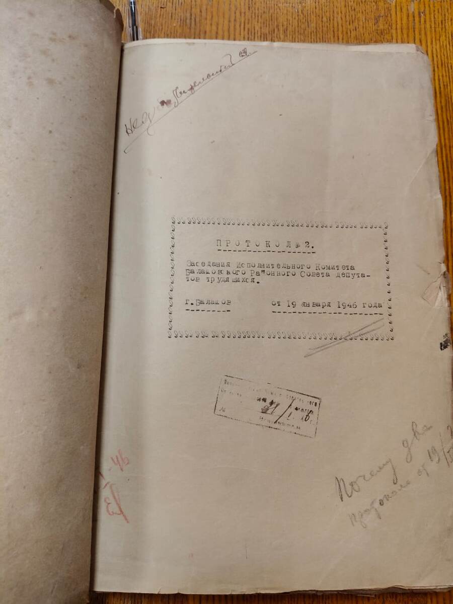 Материалы из архивов. Протоколы заседаний Исполнительного Комитета Балашовского Районного Совета Депутатов трудящихся. 1945 год.