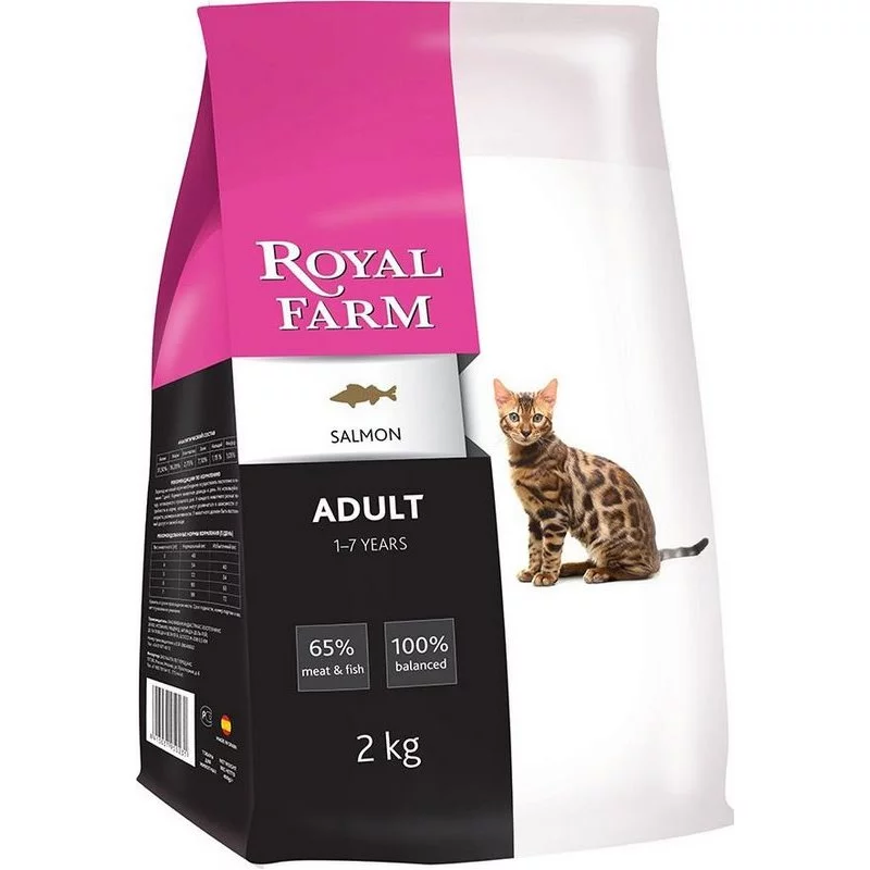 Royal Farm — это качественный промышленный корм хорошего премиум-уровня. Его состав сбалансирован для поддержания жизни здорового животного. Приятный натуральный запах (что важно для кошек) и нормальная кислотность — дополнительные плюсы.