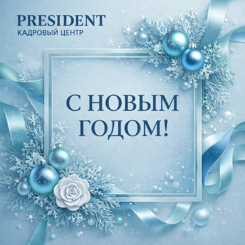 ! 🎄 Команда кадрового центра PRESIDENT желает вам уверенности в завтрашнем дне, сильных решений и людей рядом, с которыми хочется расти. Пусть 2026 год принесёт новые возможности, стабильность и много поводов для радости! Спасибо, что вы с нами. 🩵