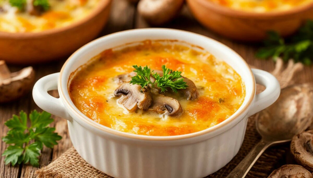 Классический жульен с грибами в духовке к Новому году